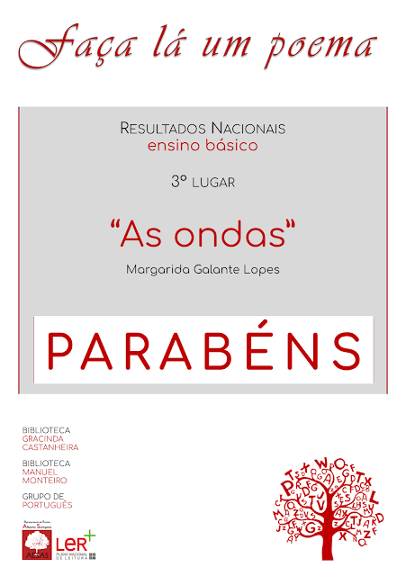 Todos os participantes e promotores do concurso no AESAS (bibliotecas e grupo de Português) estão de parabéns. Foram mais de 70 poemas participantes no concurso do 3º ciclo e do ensino secundário. Depois de uma seleção criteriosa e muito participada, apresentamos à fase final os três melhores poemas de cada ciclo de ensino. Todos os poemas podem ser apreciados neste blogue de poesias.
